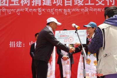 省委常委、省政府常務(wù)副省長、玉樹災(zāi)后重建現(xiàn)場(chǎng)指揮部指揮長徐福順,國務(wù)院國資委綜合局局長劉南昌、省政府副秘書長毛占彪、玉樹州政府副州長布尕、中國建筑材料集團(tuán)有限公司(以下簡稱中國建材集團(tuán))總經(jīng)理姚燕、副總經(jīng)理劉寶瑛,以及省國資委、發(fā)改委、建設(shè)廳、民政廳有關(guān)領(lǐng)導(dǎo)出席了當(dāng)天在結(jié)古鎮(zhèn)舉行的捐贈(zèng)儀式。青海水電集團(tuán)總經(jīng)理王海青代表受捐方接受了捐贈(zèng)支票。劉南昌局長、姚燕總經(jīng)理、布尕副州長分別在儀式上講話。姚燕在講話中表示,中國建材集團(tuán)還將一如既往地支持災(zāi)區(qū)發(fā)展建設(shè),努力發(fā)揮產(chǎn)業(yè)與科技優(yōu)勢(shì),用新的理念、新的技術(shù)、新的生產(chǎn)方式,為玉樹地震災(zāi)區(qū)災(zāi)后重建做出更大的貢獻(xiàn)。