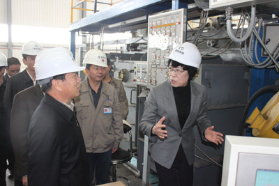 蘇寧同志一行首先來到青海水電集團(tuán)下屬青海聚能鈦業(yè)有限公司,登上電子束冷床(EB爐),仔細(xì)察看設(shè)備運(yùn)行和鈦錠熔鑄過程,詢問工藝流程、熔煉技術(shù)情況,了解鈦行業(yè)發(fā)展前景,體驗(yàn)一線工人的作業(yè)環(huán)境,并與職工及外籍技術(shù)人員一一握手交談,詢問他們的生活、工作及收入等情況,鼓勵他們再接再厲,為企業(yè)和社會經(jīng)濟(jì)的發(fā)展添磚加瓦。