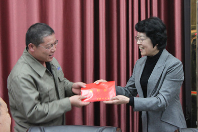 調(diào)研期間,蘇寧同志還看望了生活困難職工——青海聚能鈦業(yè)有限公司先進(jìn)工作者李善慶同志,為他贈送了慰問金。