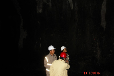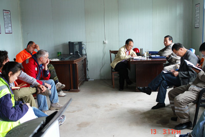 在位于門源縣青石嘴鎮(zhèn)的調(diào)水總干渠進口段工地,唐董事長深入隧洞3公里開挖處,仔細察看不洞室鉆爆斷面地質(zhì)構造,詳細了解掘進速度、出渣系統(tǒng)以及施工設備、人員配置等情況。在現(xiàn)場聽取了施工和監(jiān)理單位關于目前項目施工進展、TBM掘進機組裝、后續(xù)施工計劃等的工作匯報后,唐董事長指出,自CMC公司進駐隧洞進口以來,經(jīng)過全體施工人員的共同努力,整個工程形象有了很大的改觀,對此應充分肯定。唐董事長強調(diào),目前整個大通河正處于汛期,存在出現(xiàn)較大洪水的可能,參建各方要牢固樹立防大汛的思想,做好防汛各項準備工作,安排專人進行24小時值班和巡查,確保人員、設備和工程安全;施工單位要盡快制定嚴密、切實可行的工期安排計劃,充分利用可以利用的時間和空間資源,加快進度,確保10月15日TBM啟動并開始掘進;同時,要盡快制定相應的規(guī)范和規(guī)章,加強組織調(diào)度和工序銜接,保證施工順利、有序進行。