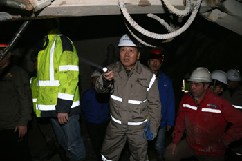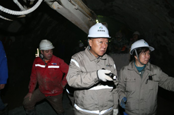 慰問期間,集團領導一行乘坐軌道車深入到距離洞口7.4km的輸水隧洞出口段施工現(xiàn)場,仔細察看了TBM維修當前開挖掌子面巖性和主洞、旁通洞第三段人工鉆爆施工狀況,要求參建各方加強溝通協(xié)調(diào),縝密安排施工計劃,強化現(xiàn)場管理,高度重視安全工作,切實加快施工進度和TBM改造工作,合理規(guī)劃,統(tǒng)籌兼顧,為TBM盡早啟動掘進創(chuàng)造條件。