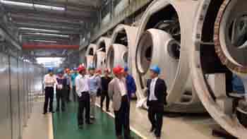 5月18日,唐增科、王海青一行前往東方電氣杭州新能源公司制造基地,對茫崖項目風機設備制造情況進行現(xiàn)場調(diào)研,并與該公司領導進行交流。唐增科同志強調(diào),茫崖風電場地處高海拔、強風沙、高粉塵地區(qū),對發(fā)電機的防砂、防塵能力要求高,希望該公司發(fā)揮技術(shù)優(yōu)勢,有對風機進行針對性地優(yōu)化和改進,確保質(zhì)量,縮短生產(chǎn)周期,保證設備運行效率,為盡早實現(xiàn)茫崖風電場建成投運目標助一臂之力。5月20日,唐增科董事長、王海青總經(jīng)理一行又前往參觀SNEC(2014)第八屆上海國際太陽能光伏展,并與韓華新能源、陽光電源等多家參展企業(yè)進行了業(yè)務和技術(shù)交流,充分了解光伏行業(yè)發(fā)展成果和市場形勢。