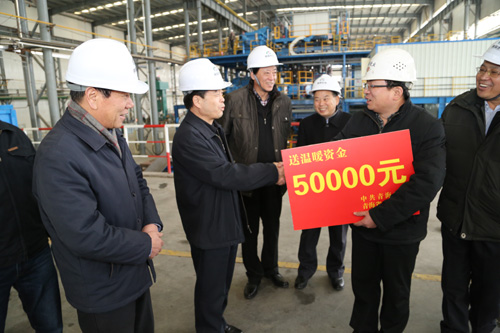 駱玉林副省長深入生產(chǎn)車間,察看了解了聚能鈦業(yè)經(jīng)營發(fā)展情況,并代表省委、省政府頒發(fā)了送溫暖慰問金。他指出,聚能鈦業(yè)是我省新材料產(chǎn)業(yè)的重點(diǎn)企業(yè),面對(duì)復(fù)雜多變、低迷疲軟的市場(chǎng)環(huán)境,全體干部職工堅(jiān)守目標(biāo)、頂住壓力,求真務(wù)實(shí)、攻堅(jiān)克難,2014年各項(xiàng)工作取得了較好成績。他要求聚能鈦業(yè)全面研判經(jīng)濟(jì)形勢(shì),認(rèn)準(zhǔn)行業(yè)發(fā)展前景,把握其中蘊(yùn)藏的重要機(jī)遇,進(jìn)一步堅(jiān)定信心,加快自主創(chuàng)新,搶占國內(nèi)市場(chǎng),推進(jìn)EB爐成套設(shè)備國產(chǎn)化項(xiàng)目,延伸完善產(chǎn)業(yè)鏈條,增強(qiáng)核心競(jìng)爭能力,圓滿完成2015年的生產(chǎn)和銷售任務(wù),實(shí)現(xiàn)企業(yè)持續(xù)健康發(fā)展。在慰問聚能鈦業(yè)困難職工王東東、王軍同志時(shí),駱玉林副省長詳細(xì)了解他們的學(xué)習(xí)、工作和生活情況,勉勵(lì)他們自強(qiáng)不息,不斷提升素質(zhì)本領(lǐng),增強(qiáng)戰(zhàn)勝困難的能力,以團(tuán)結(jié)協(xié)作、勤奮敬業(yè)的實(shí)際行動(dòng),為促進(jìn)企業(yè)科學(xué)發(fā)展做出積極貢獻(xiàn)。